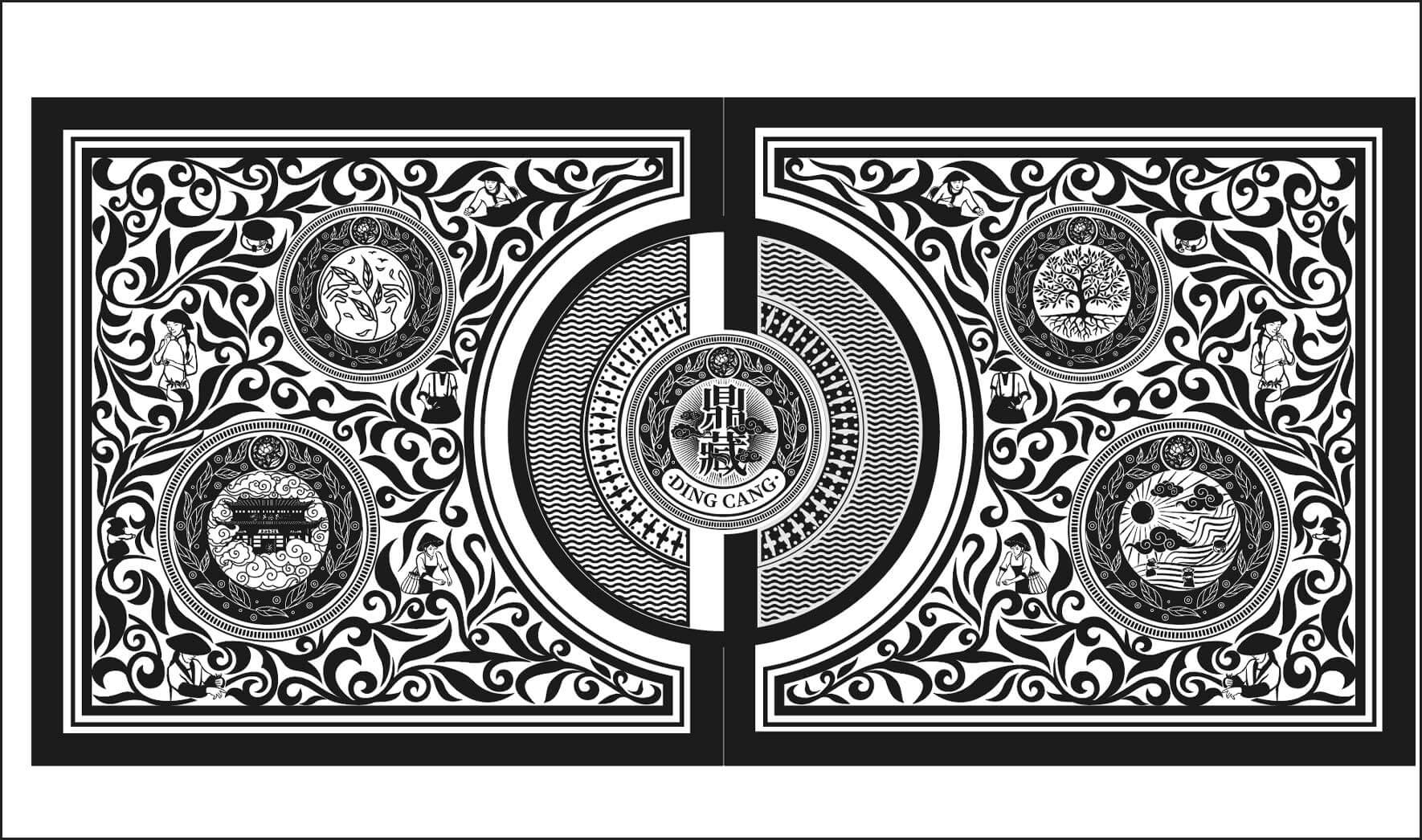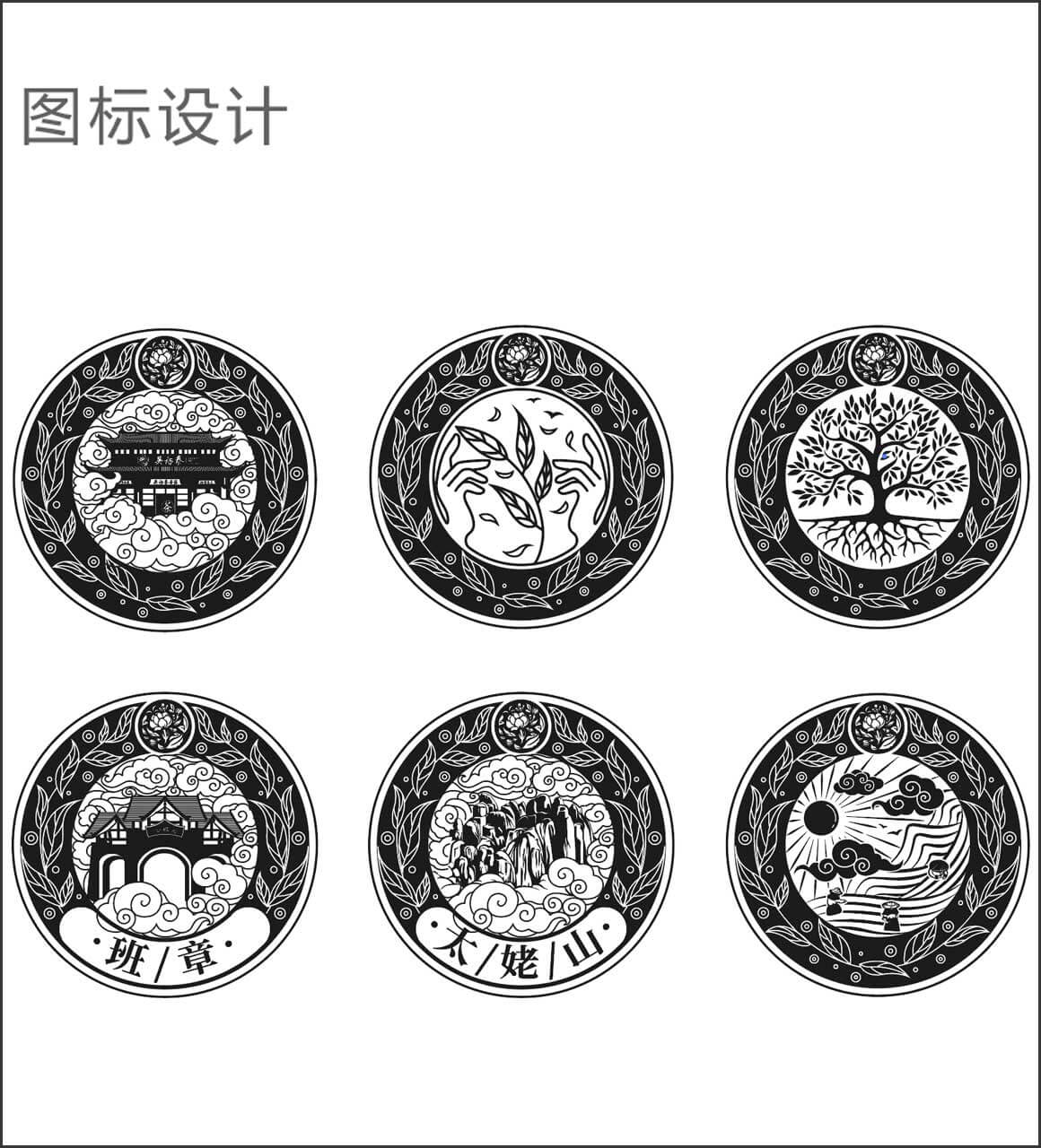 太極圖形居中,四周被茶葉包裹,茶葉中又有采茶女在中間采茶,給人層層驚喜,精致耐看。
