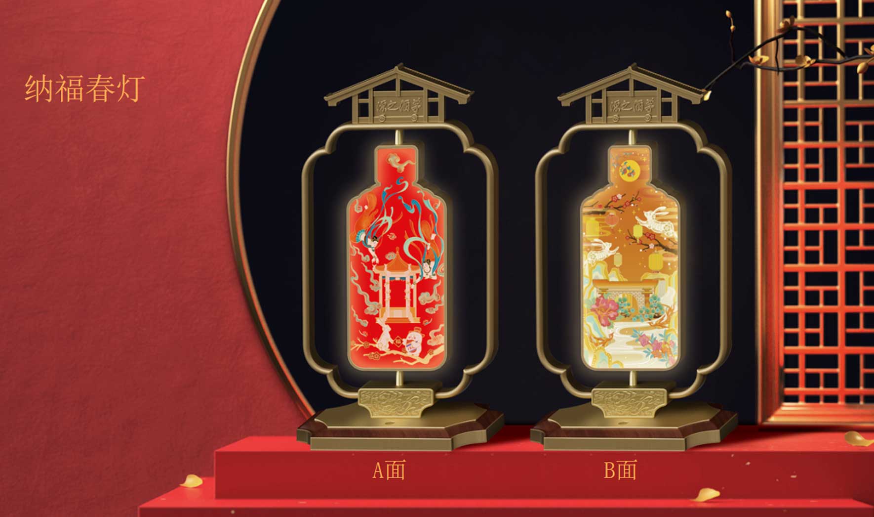 將茅臺酒文化與中國春節(jié)花燈文化相結(jié)合把茅臺酒釀酒工業(yè)遺產(chǎn)群的門匾“茅酒之源融入傳統(tǒng)春燈造型中,點亮春燈,祥和光輝相互照映設計師在延續(xù)茅臺經(jīng)典品牌印記的同時,在春燈上用了原創(chuàng)插畫和茅型瓶經(jīng)典符號做了創(chuàng)變可兩面翻轉(zhuǎn)增添節(jié)日樂趣。