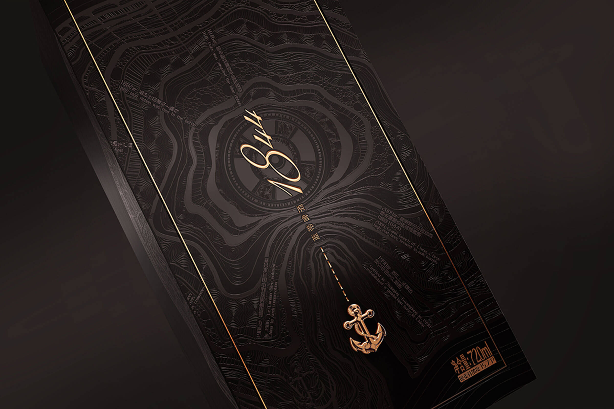 柏星龍?jiān)O(shè)計(jì)師巧妙地將產(chǎn)品禮盒紋飾與火漆logo融為一體,禮盒上的船錨沿虛線向下,伴隨底紋年輪向外延伸,寓意藍(lán)帶品牌歷經(jīng)時(shí)光洗禮愈發(fā)輝煌。更將這份品質(zhì)與榮譽(yù)賦予瓶身,藍(lán)絲帶在素雅禮盒上煥發(fā)獨(dú)特亮色,猶如瓶身的紳士領(lǐng)結(jié),盡顯品牌高端品質(zhì)的藝術(shù)魅力。