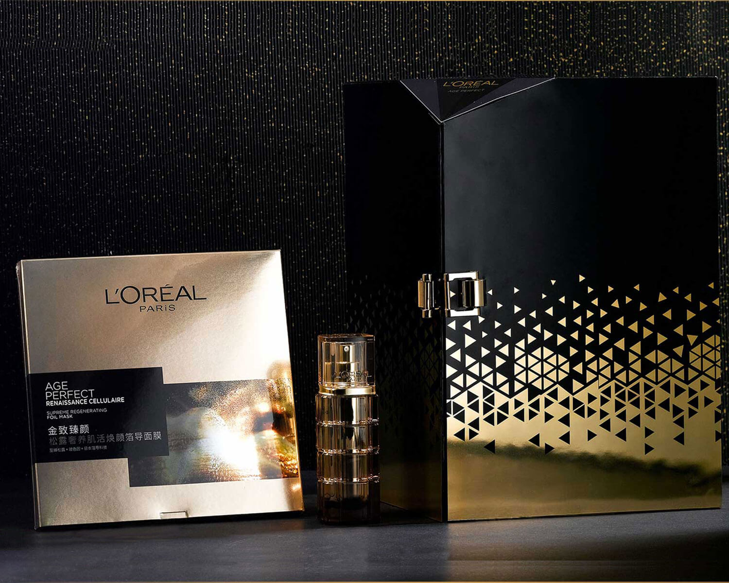 松露紋理,與鉆石的切割感結合打造專屬視覺符號,以馬賽克手法將鉆石的切割面與松露結合,用元素逐漸減少來變現(xiàn)產品擁抱黑夜,激活細胞,淡退時光印記的功能。