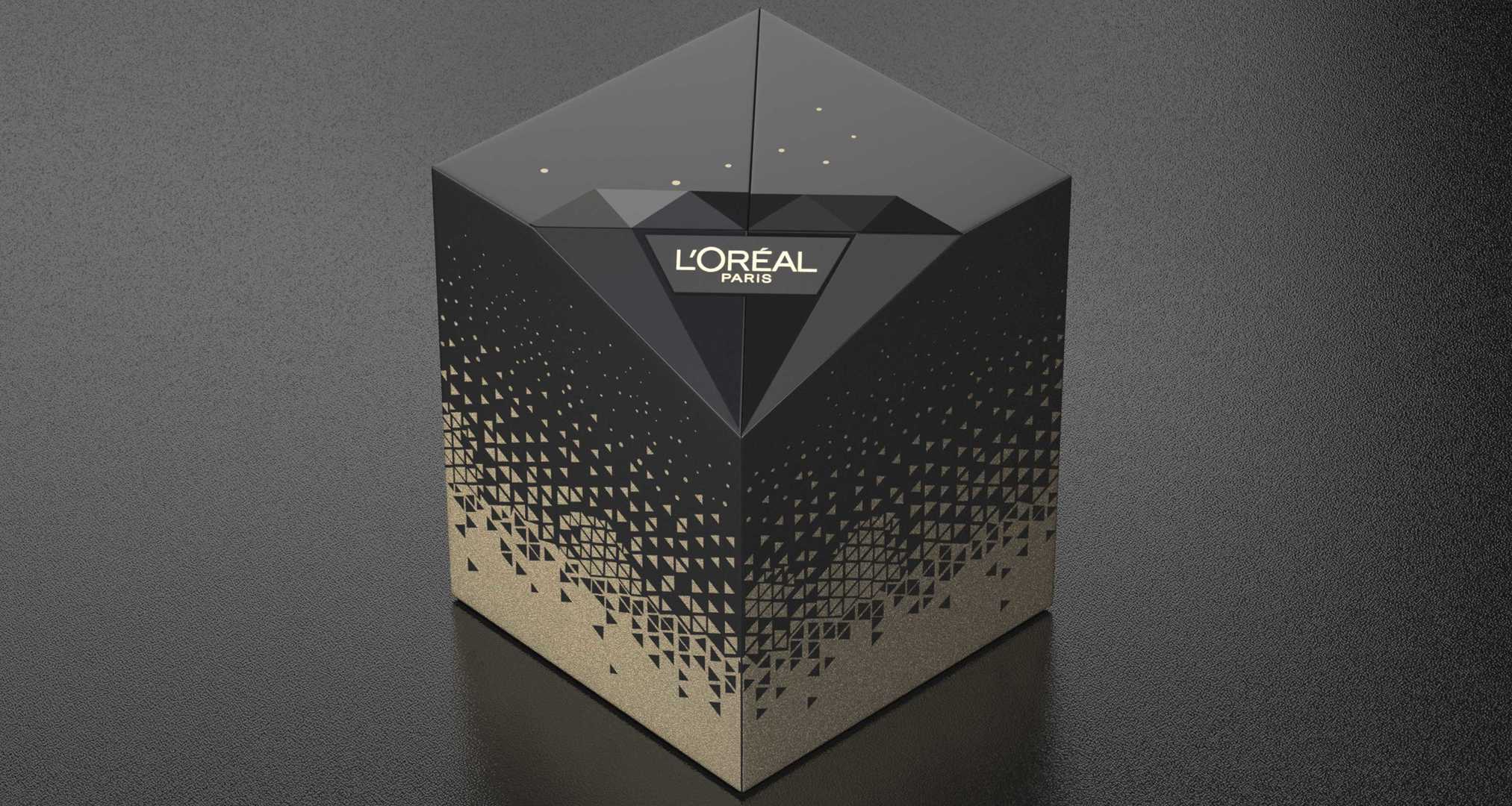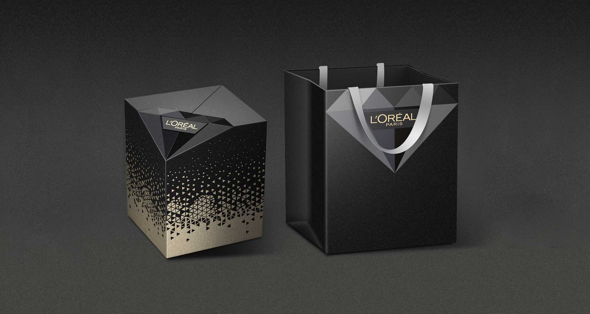 包裝結構靈感來自鉆石,將鉆石的切割運用在包裝上,同時打開包裝,俯視效果為鉆石型,專屬性更強。