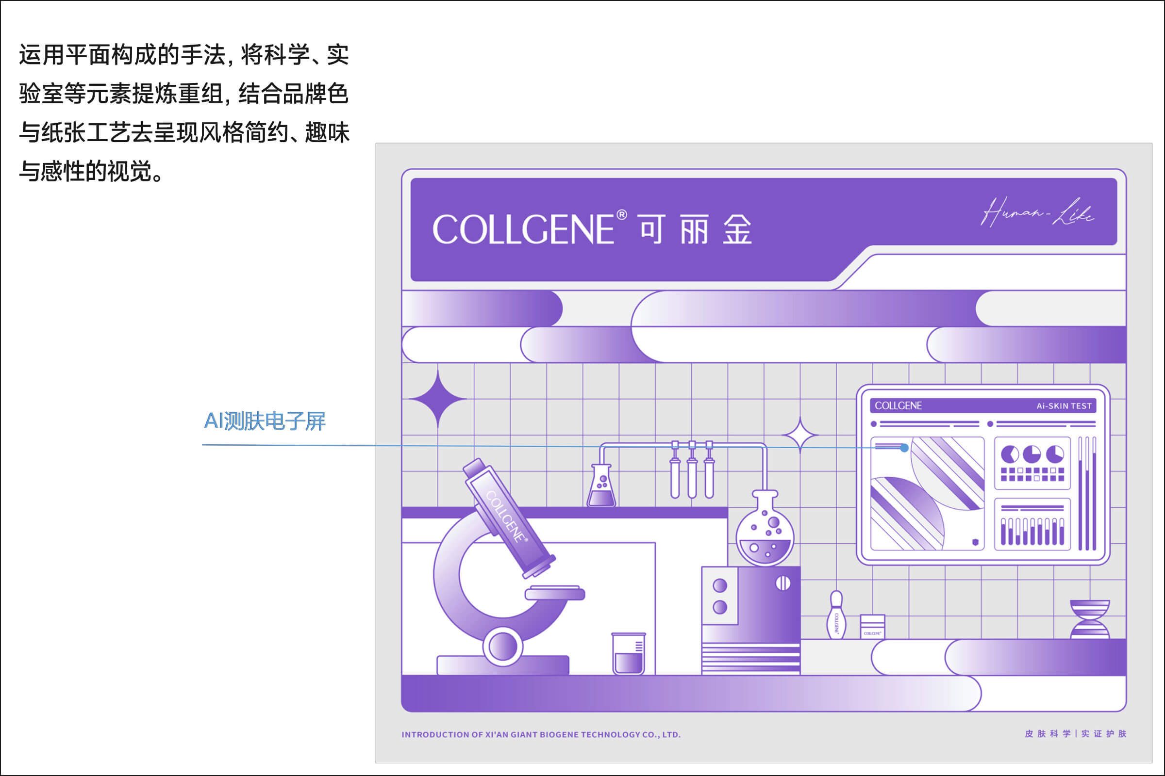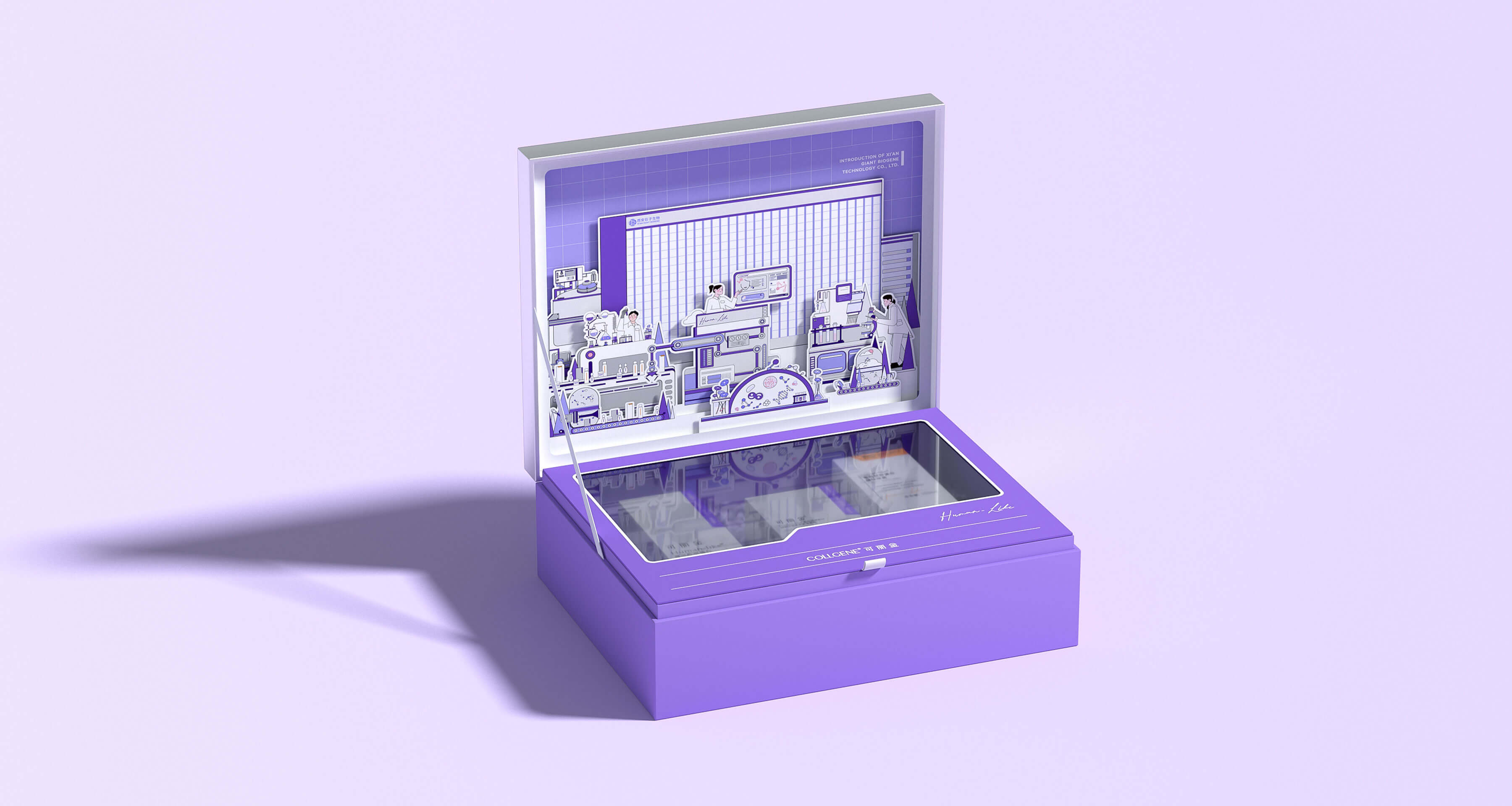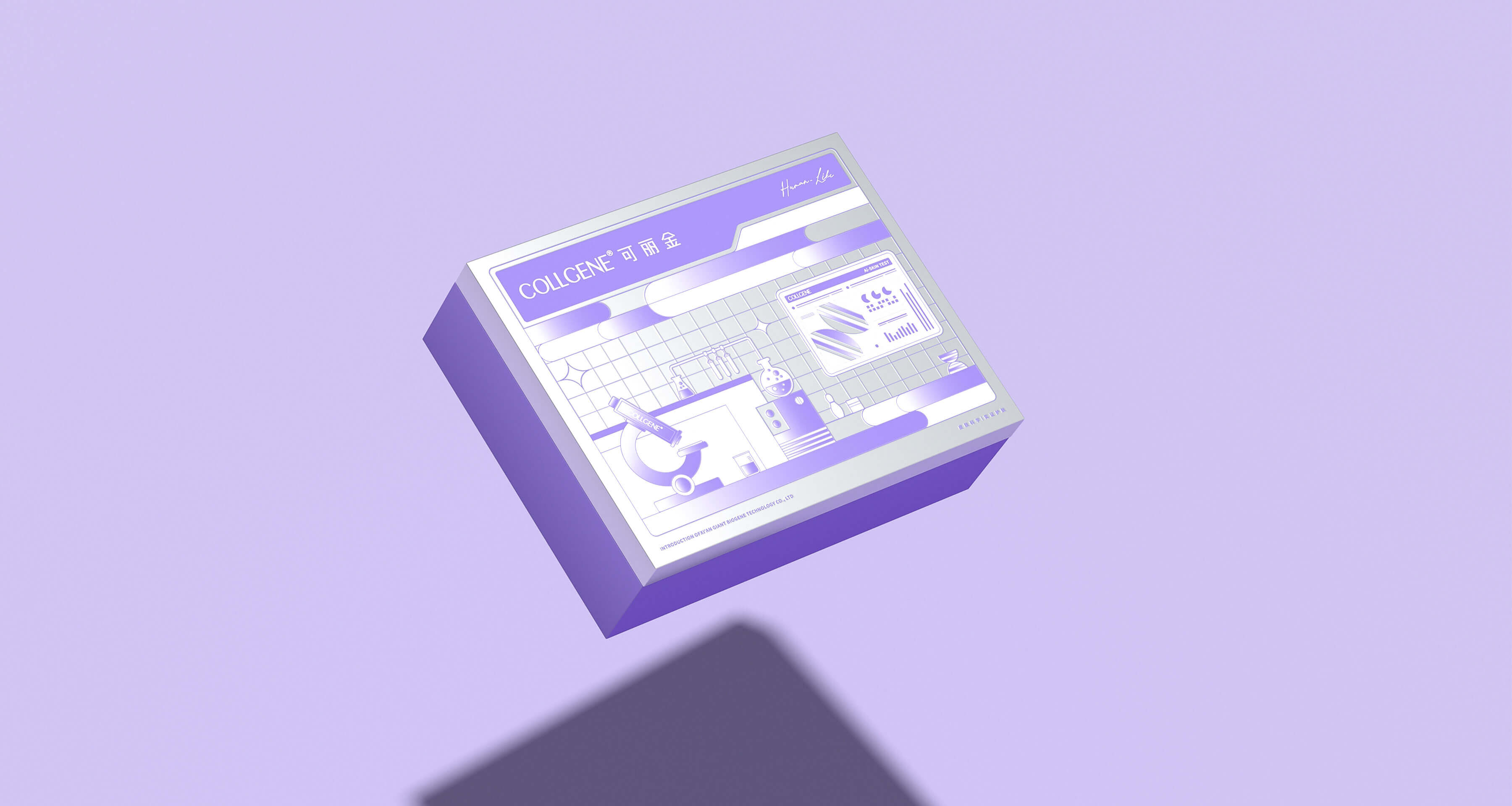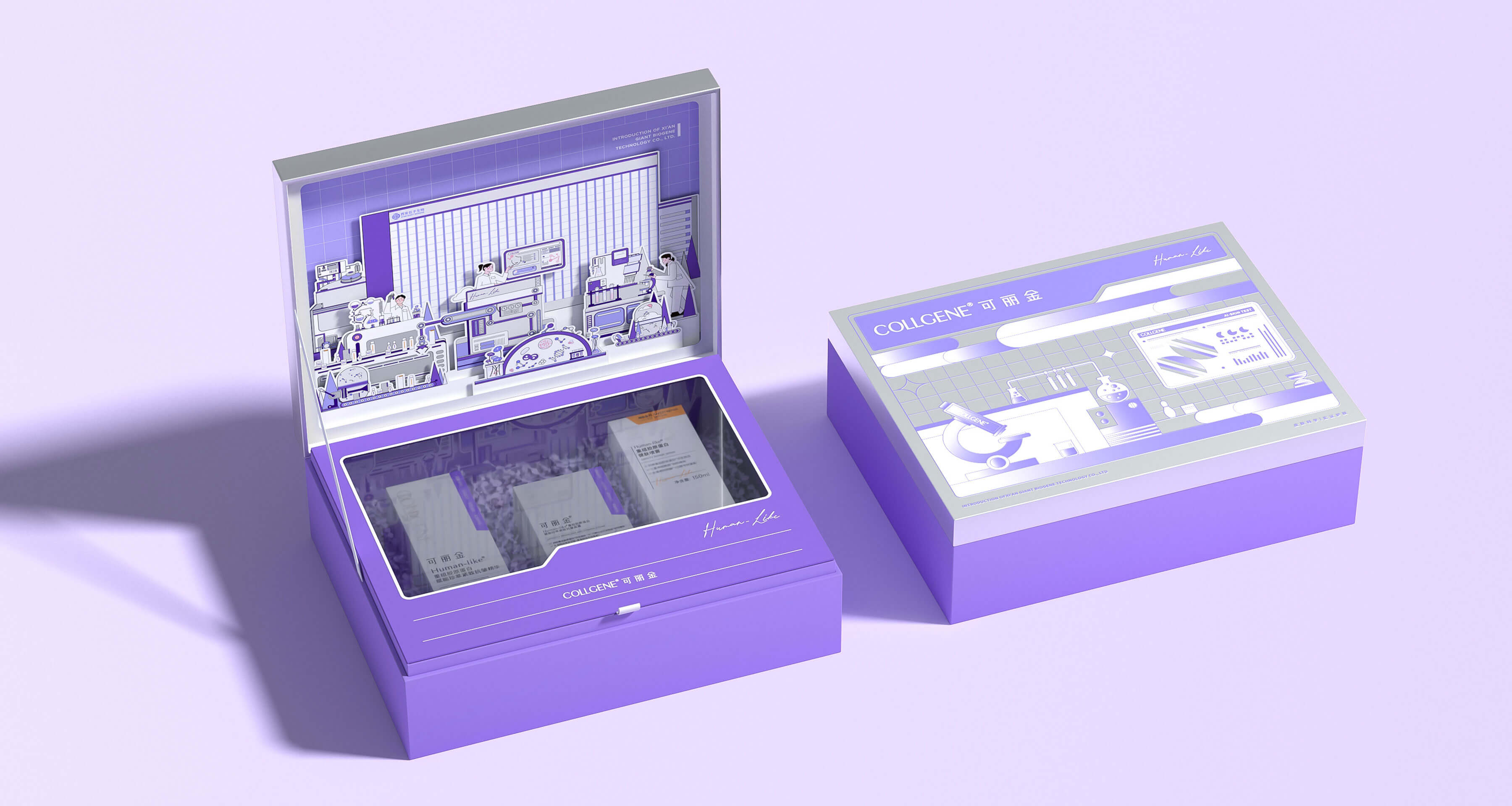 以帶有紫色調(diào)的長春花藍,作為年度流行色,紫色已然成為各行業(yè)的高人氣色彩,可麗金賦能系列采用紫色作為禮盒主色調(diào)以感性、擬人化、年輕化、生物科技感的風格引起消費者的共鳴。