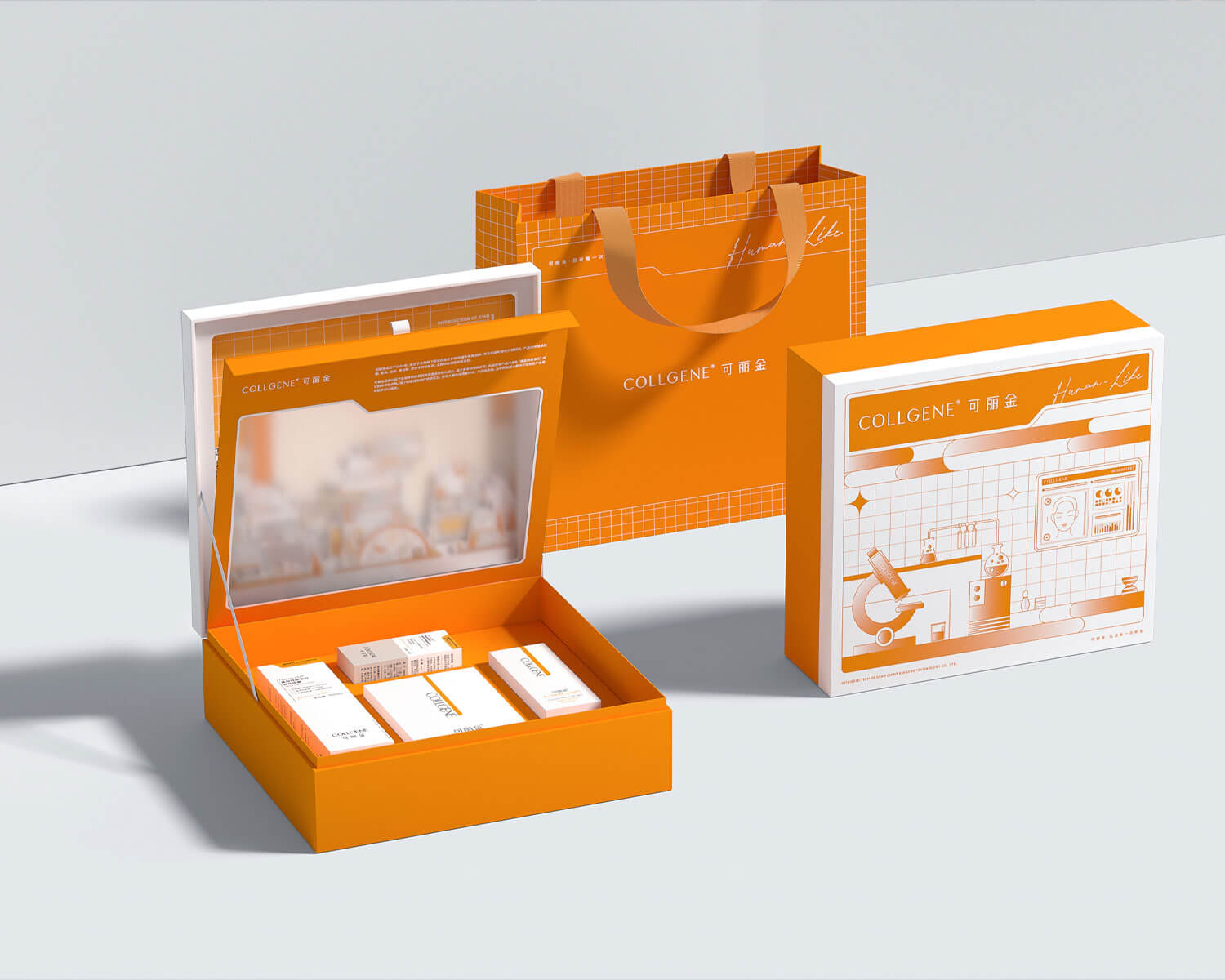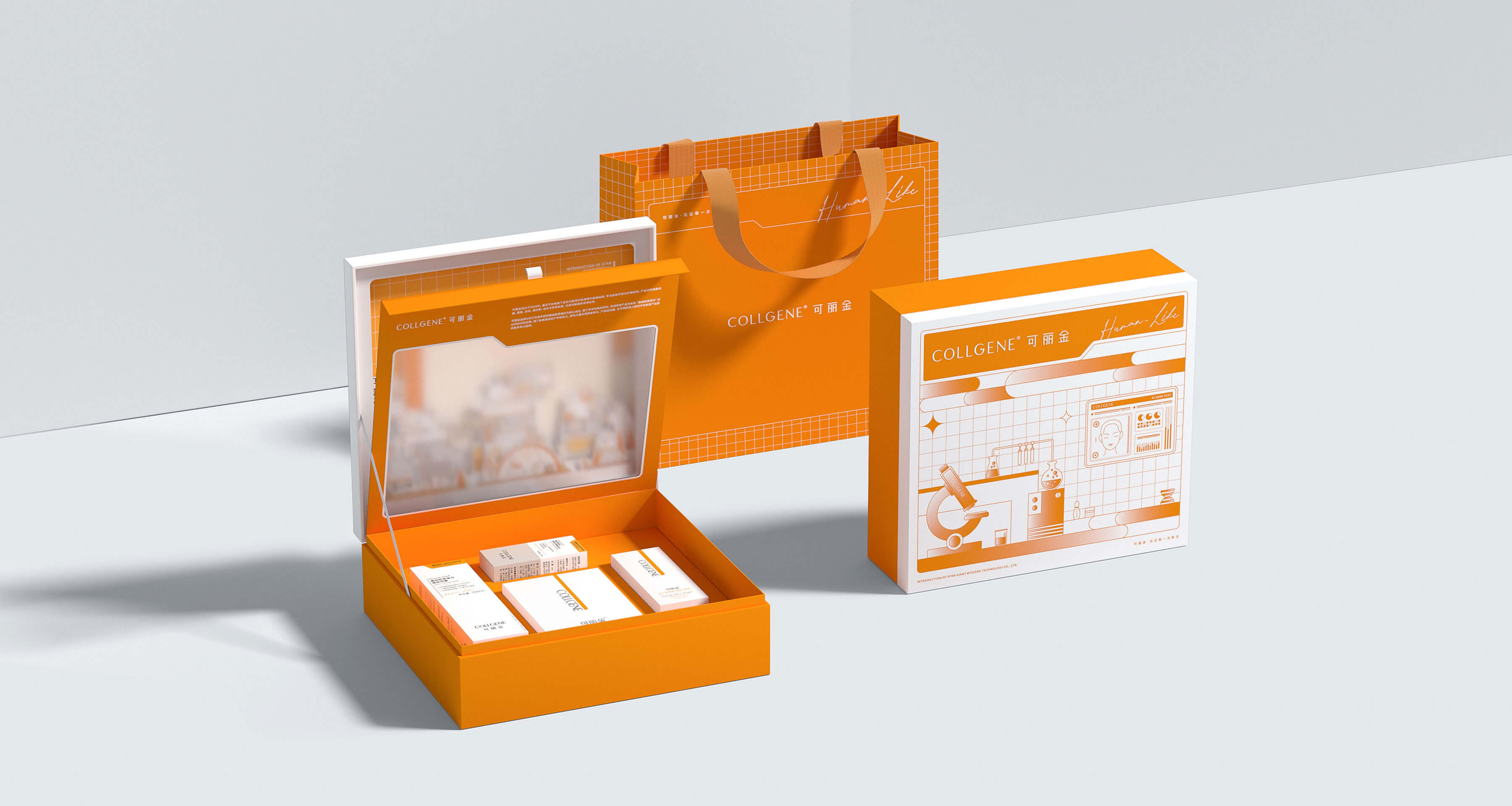 “可麗金健膚系列”禮盒的主色調(diào)以紫色、橙色,為主色調(diào),高級橙,代表著健康與時尚,紫色代表著神秘與高貴,為禮盒增添了一抹獨特的魅力。這樣的色彩搭配,不僅讓禮盒外觀更加吸引人,更傳達出品牌對于健康與美麗的執(zhí)著追求。