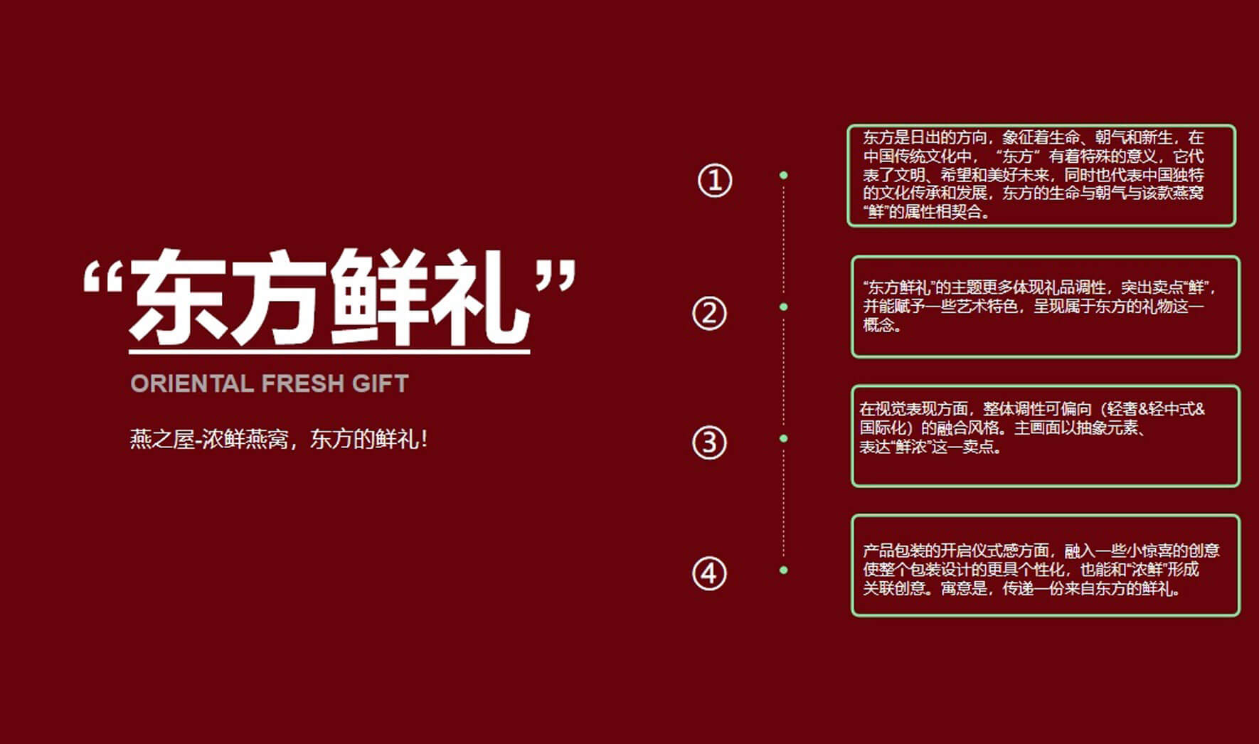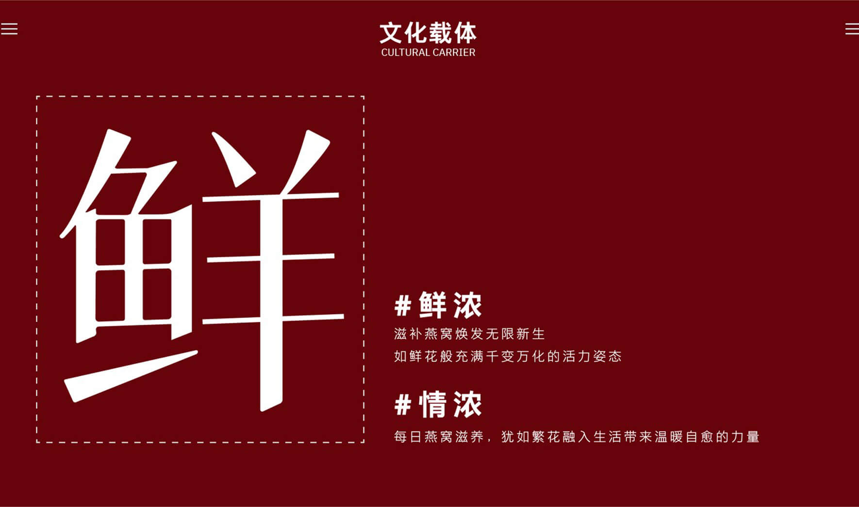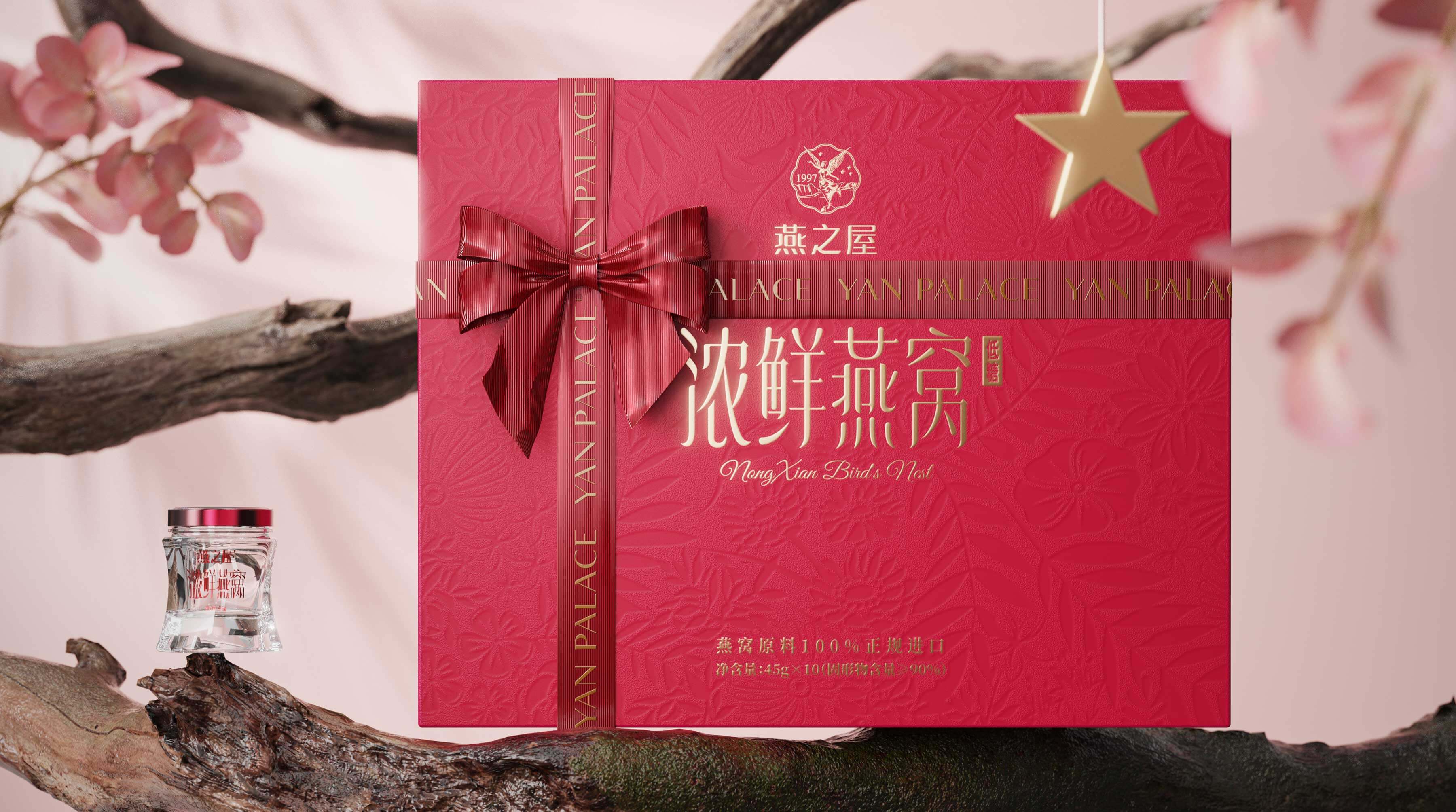 燕之屋·濃鮮燕窩禮盒升級設(shè)計,以燕之屋品牌基因?yàn)閯?chuàng)作載體,強(qiáng)化濃鮮燕窩這一品類產(chǎn)品屬性,圍繞“東方鮮禮”產(chǎn)品主題,結(jié)合藝術(shù)象征符號,呈現(xiàn)精致女性的現(xiàn)代滋養(yǎng)品質(zhì)生活。國人的儀式感