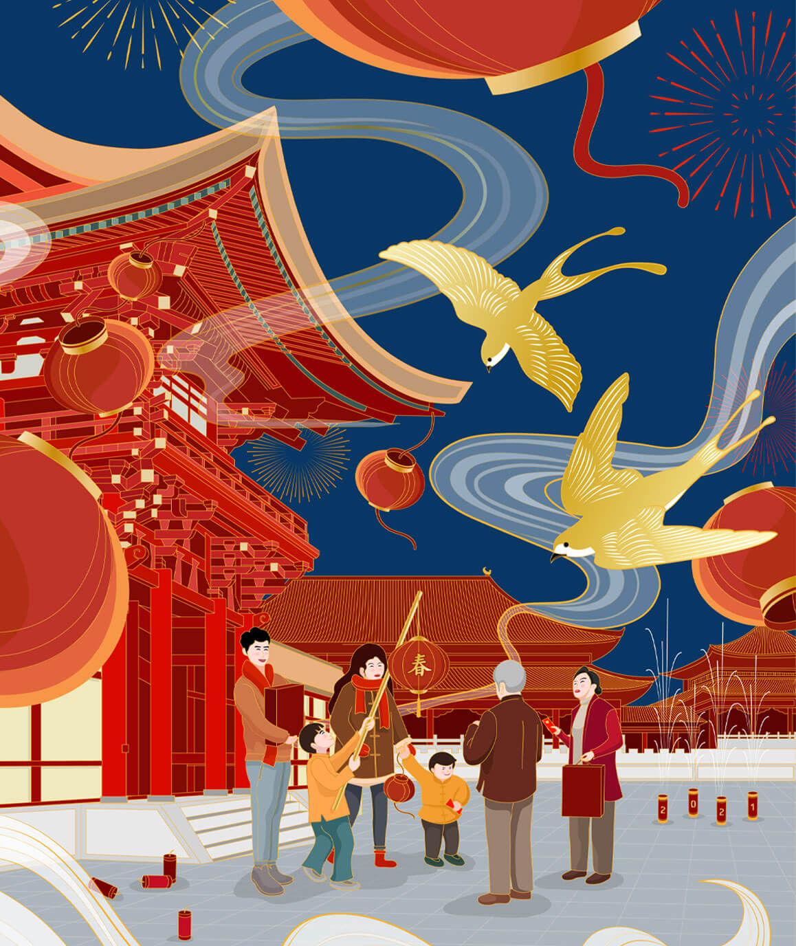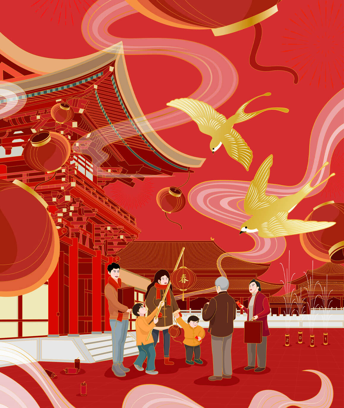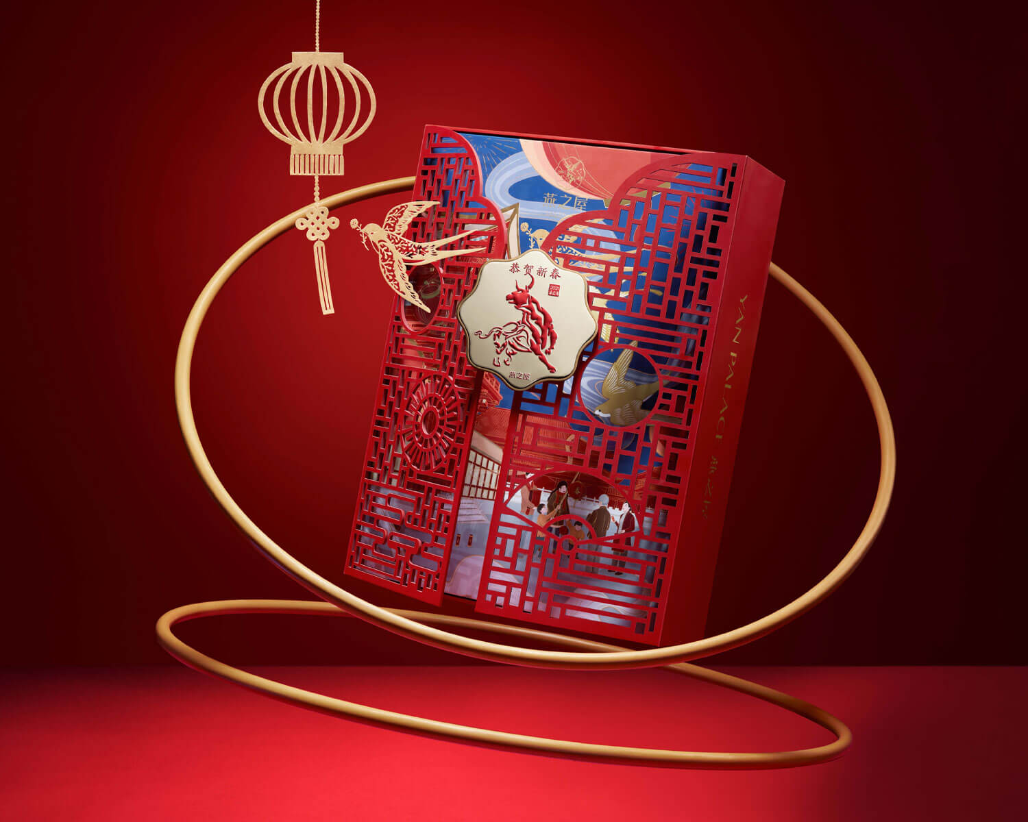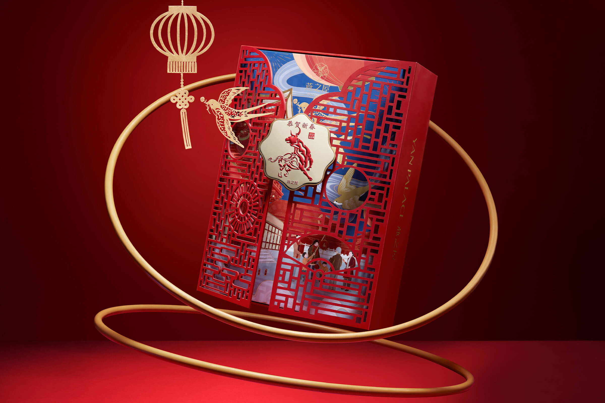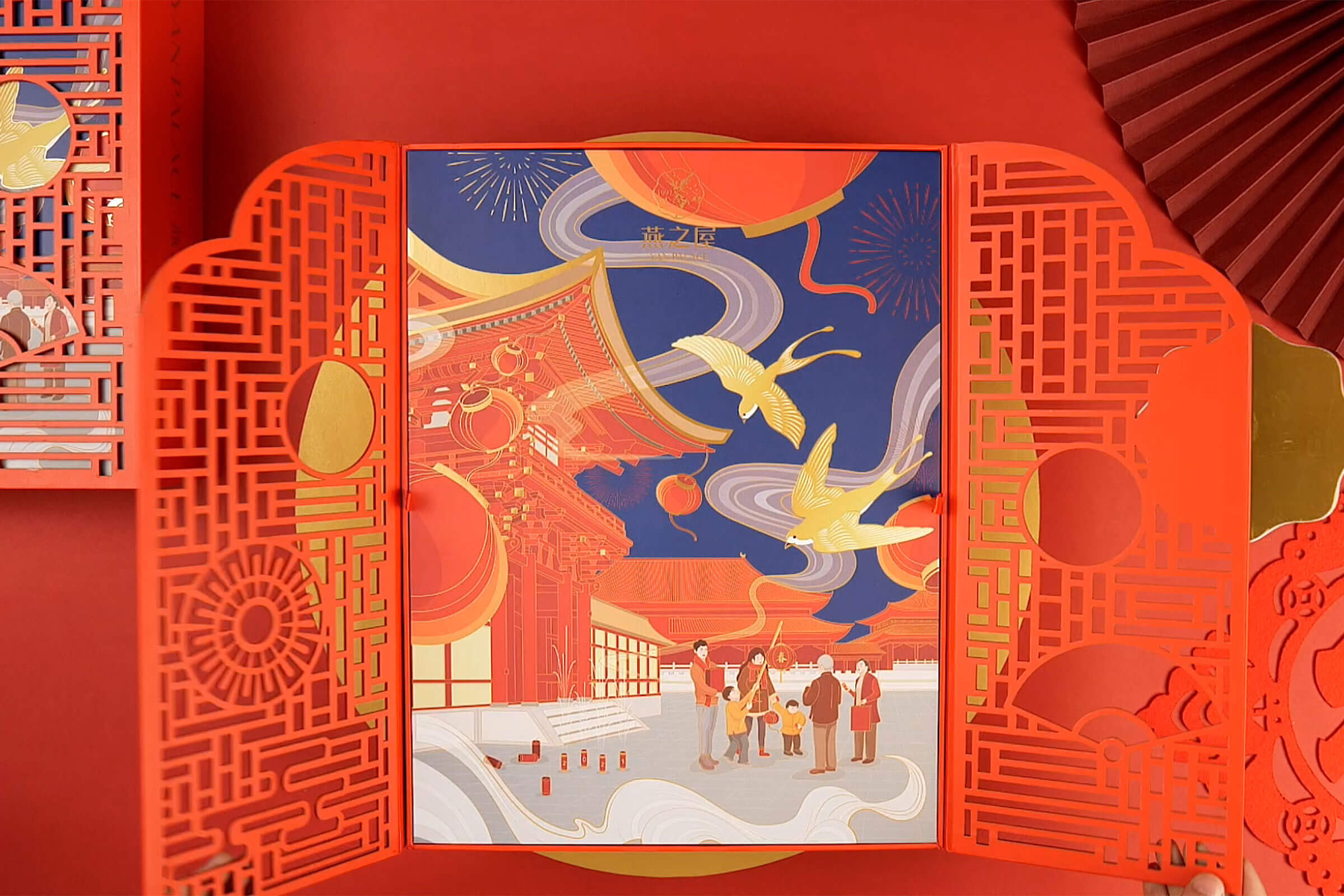 因此,柏星龍設(shè)計師,將外包裝的元素通過改,與調(diào)整使插畫與窗格的布局更加和諧透過“窗戶”看到團(tuán)圓喜慶的畫面。