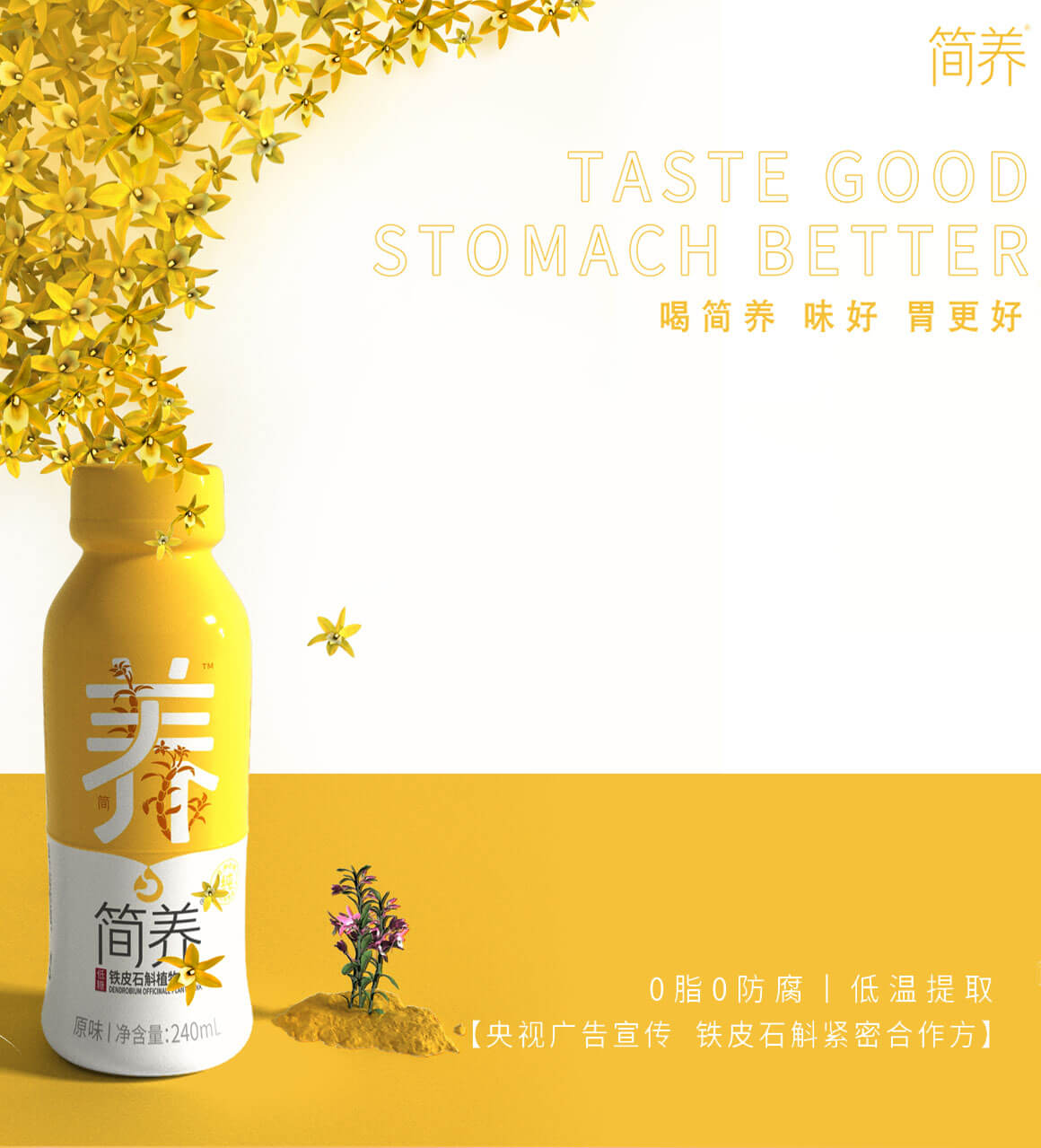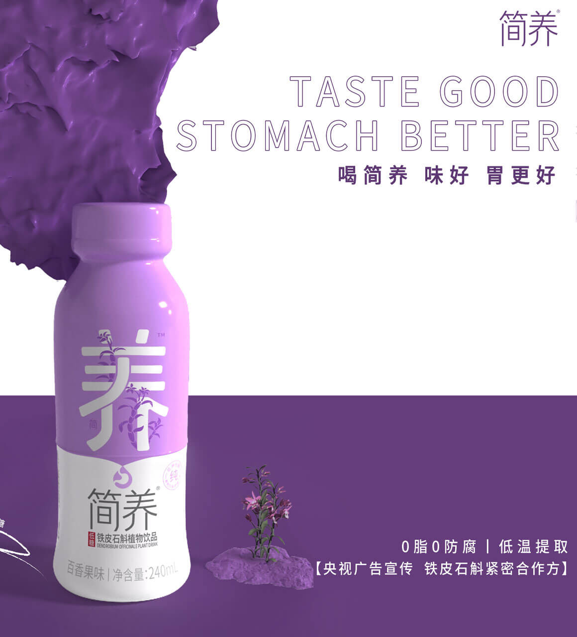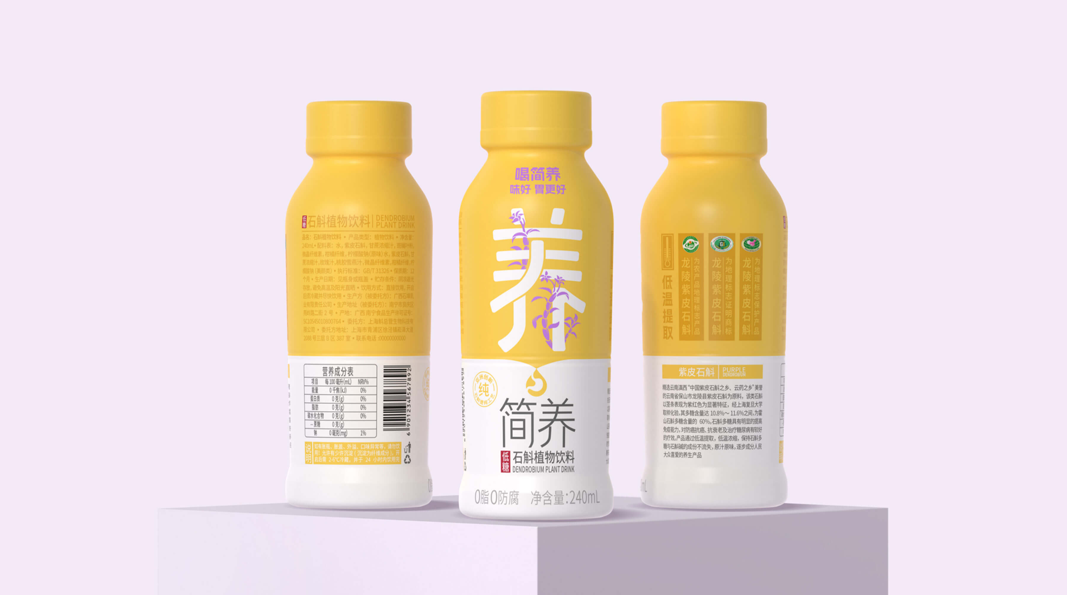 【簡養(yǎng)】是一個以鮮鐵皮石斛萃取原液的養(yǎng)胃植物飲料品牌,專注為消費者打造的健康飲料品牌。2023年,柏星龍與【簡養(yǎng)】品牌創(chuàng)意攜手,為簡養(yǎng)產(chǎn)品搭建從0-1的落地執(zhí)行路徑,從新的視覺維度打造與眾不同的養(yǎng)生飲料品牌。